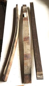 Whatever I find or collect I am careful not to remove these signs completely, preferring a light brushing or careful use of steel wool. It was from a beach on the North East coast that during the 1970’s I first came across three time and tide washed oak barrel staves. There was no sign of rot or worm and these offered me the opportunity to use them as a structure to hold and support a warp. Barrel Staves are easily obtained through eBay…no need to explore the local beaches!